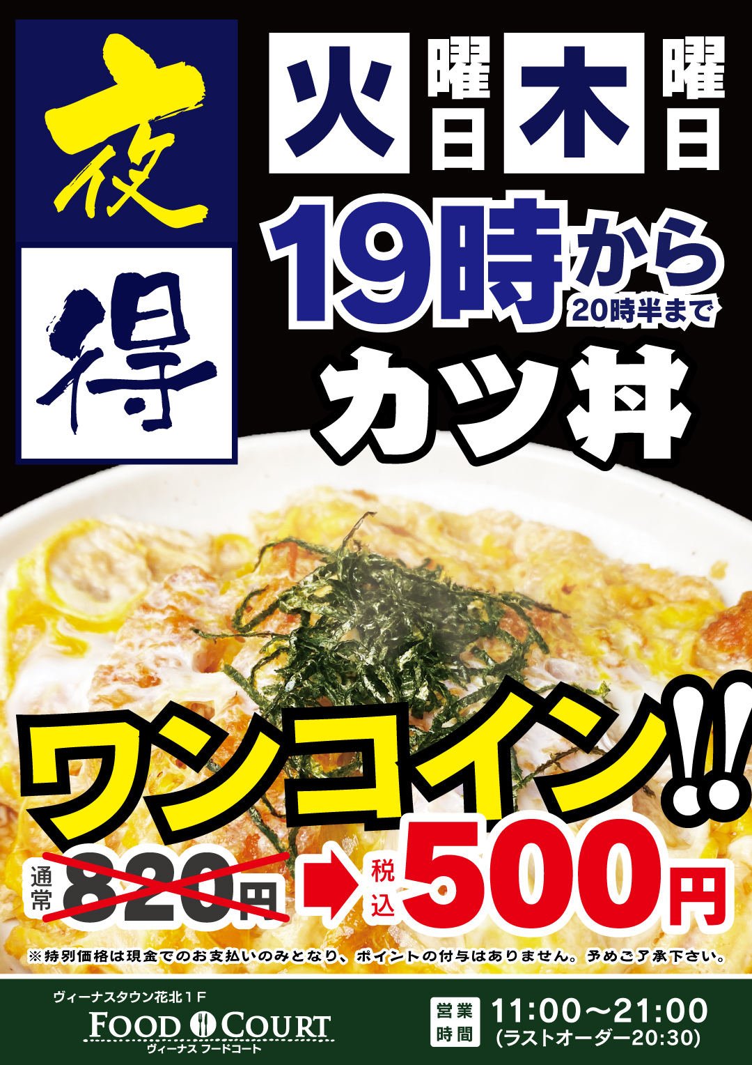 ヴィーナスタウン花北館内で使えるお得なクーポンを無料で配布致します。