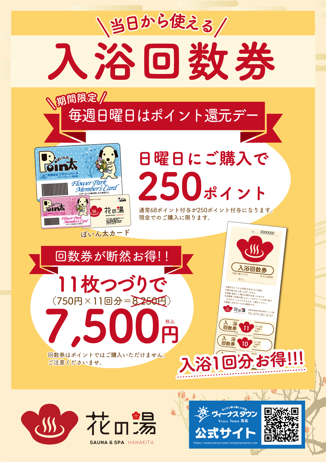 ①【花の湯入浴回数券ポイント還元デー】