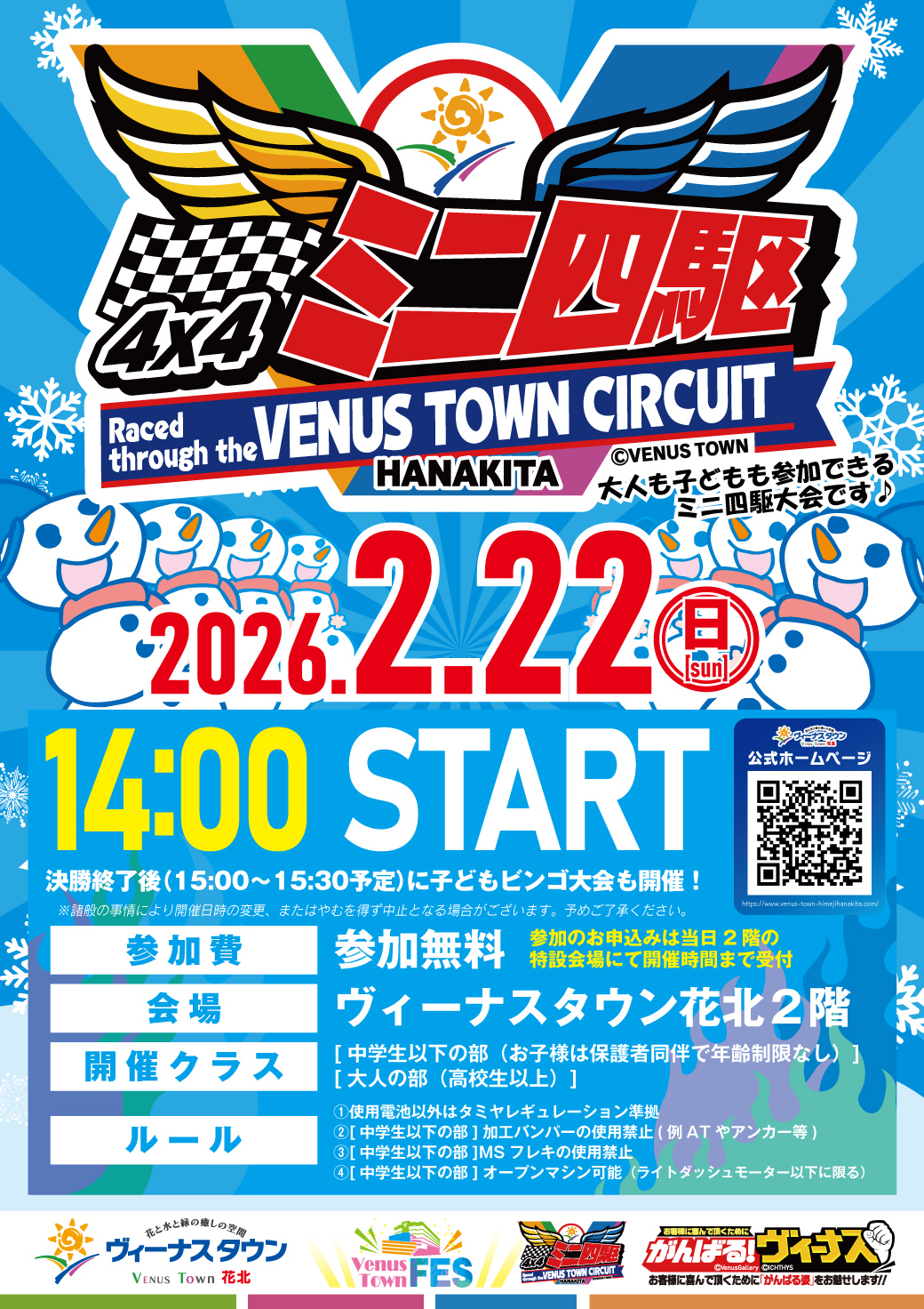 ミニ四駆大会決勝終了後には【子どもビンゴ大会】を開催!様々な豪華景品をご用意しております!