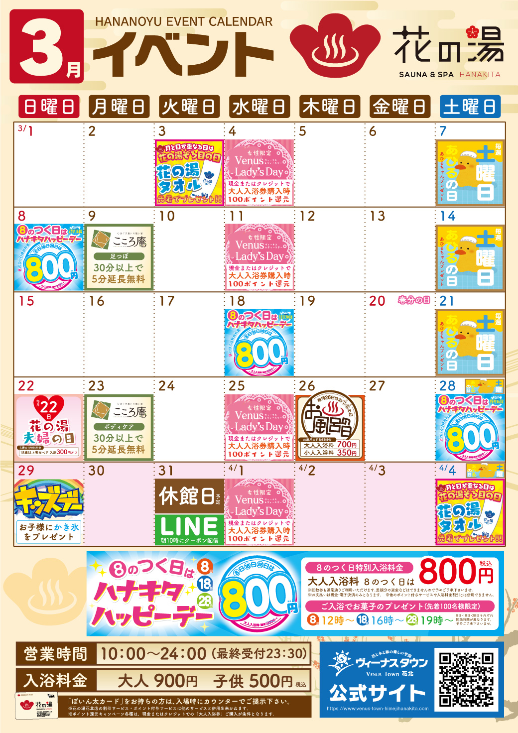 ヴィーナスタウン花北<3月>営業案内