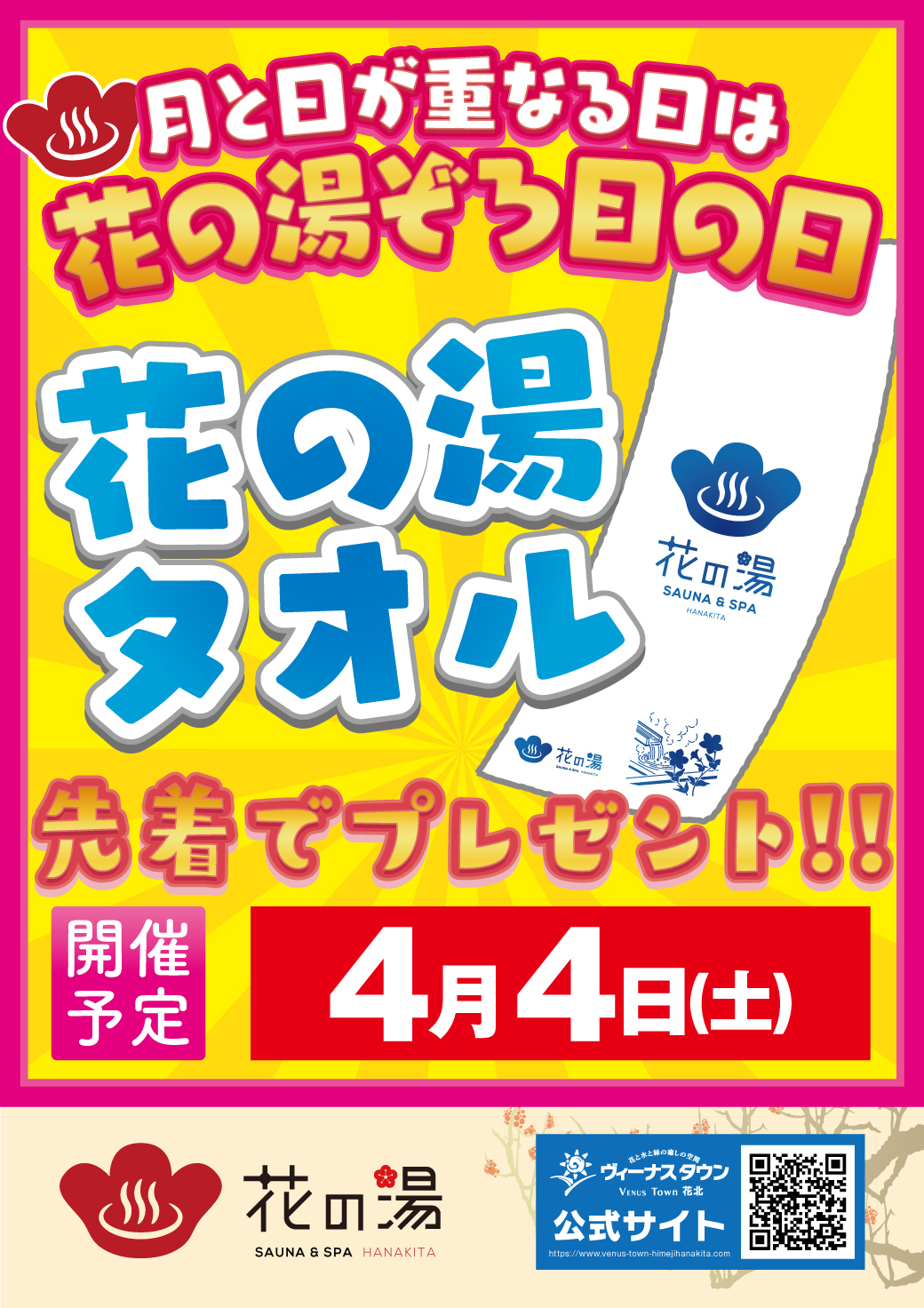 ※当日のタオル在庫状況により、「花の湯オリジナルタオル」以外のタオルとなる場合がございます。予めご了承下さい。