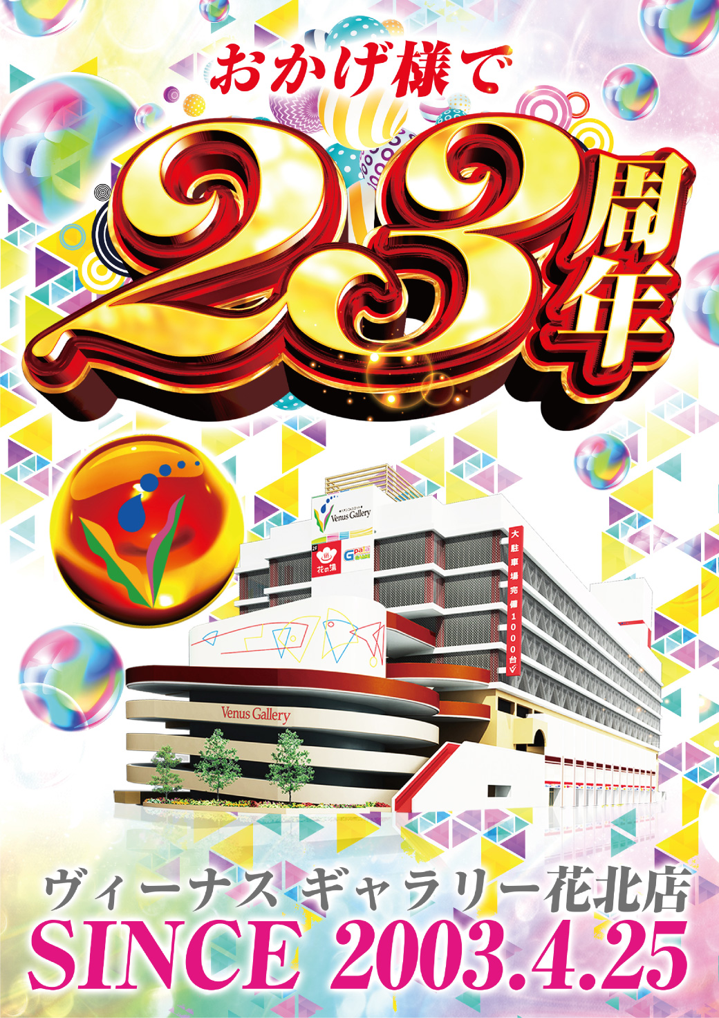 おかげさまでパチンコ&スロット ヴィーナスギャラリー花北店は創業23周年を迎えます。!
