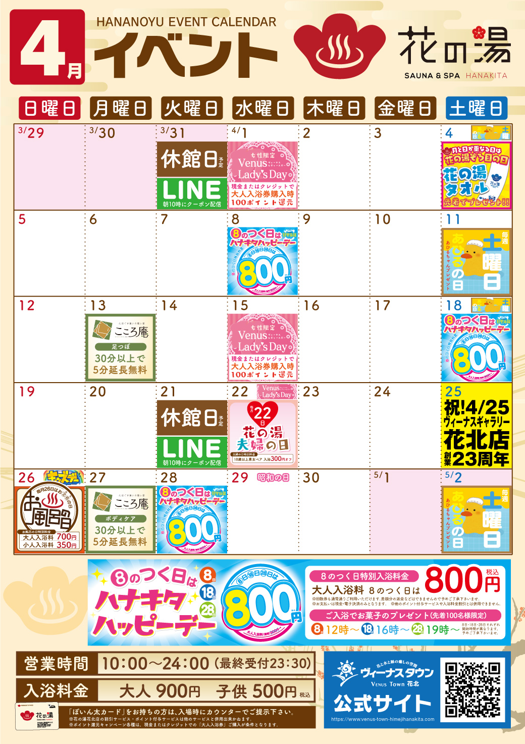 ヴィーナスタウン花北<4月>営業案内