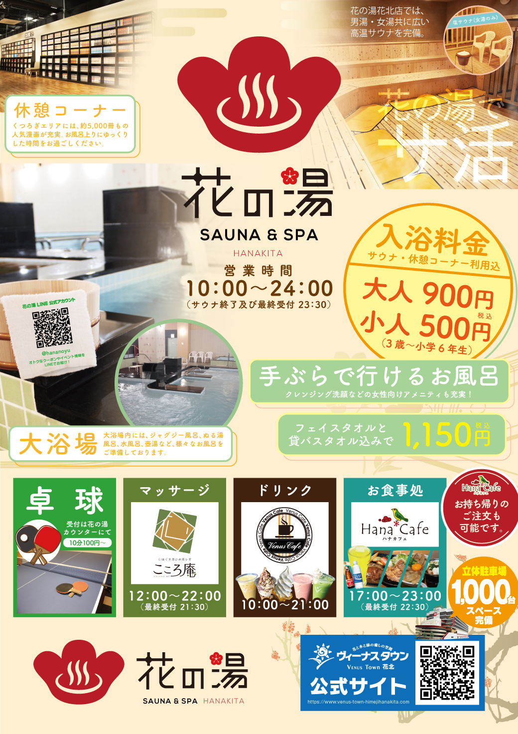 花の湯では、あたたかいお風呂とほかほかのごはん。