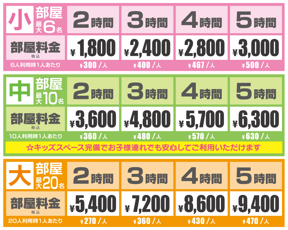 ご利用時に年齢確認をさせて頂く場合がございます。ご理解とご協力の程、宜しくお願い申し上げます。 - 最大収容